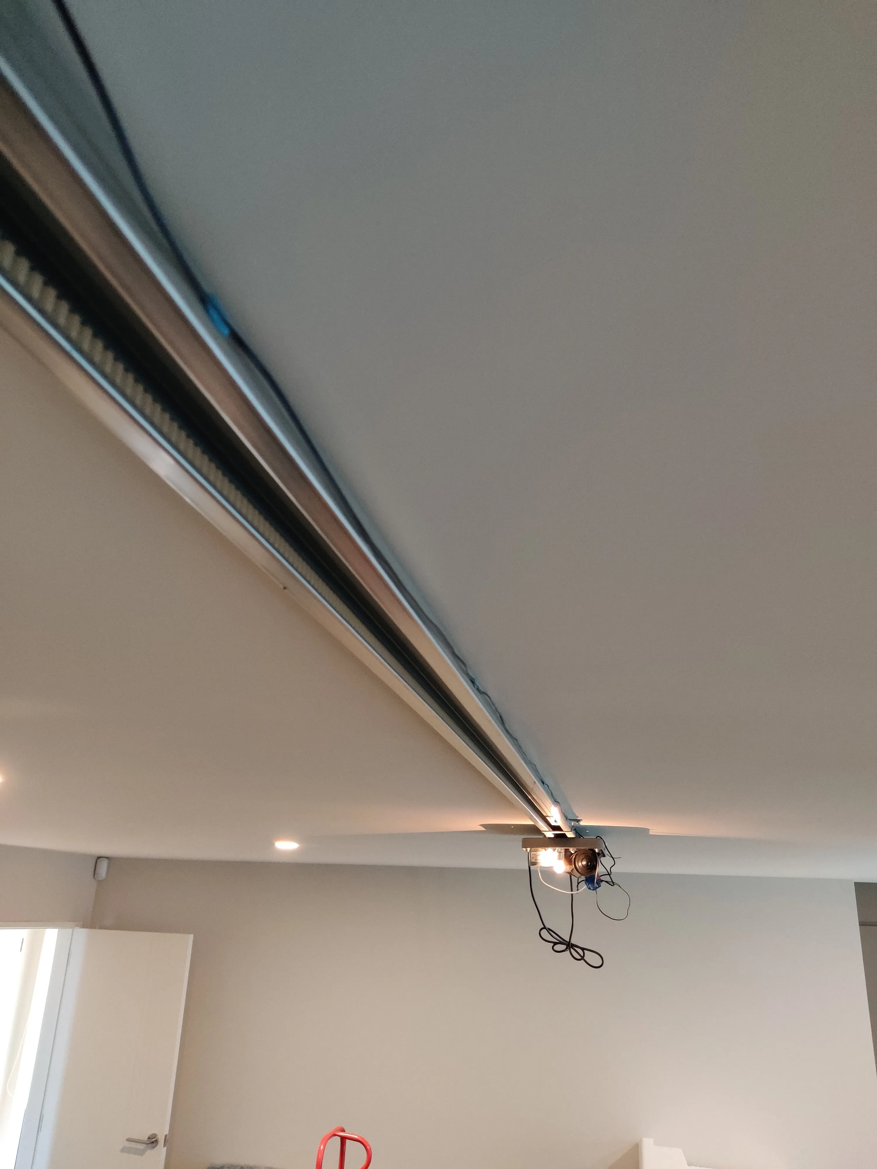 To run it out along the door chain track, I used the doorbell wire. After running one end into the GDO unit and attaching it to the correct terminals on the shelly, I ran the other end out to where the track head attached to the door at the fully closed position. Once I worked out roughly the correct length, I cut the wire and attached it to the switch wires. This was a bit shoddy, since I didn’t have a soldering iron or proper connectors and just wrapped the wires around each other and covered with electrical tape, but since I don’t expect it to be moving around at all, it should hold up okay. That being said, you should always joing your properly! Don’t do what I do, and frankly, don’t do what I say either - i’m just some guy, what do I know?